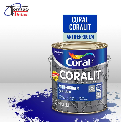 TINTA PREMIUM CORAL CORALIT ANTIFERRUGEM FERROLACK (3,6L) – Esmalte sintético para madeiras, metais, aço, alumínio, etc.⠀